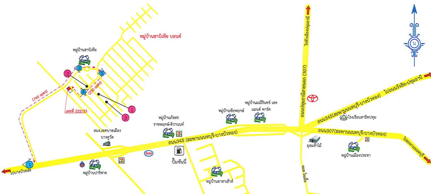 Location: House No. 222/33 Soi 19, from Tor. 345 RoadNonthaburi Bridge-Bang Bua Thong, about 990.0 meters to the property