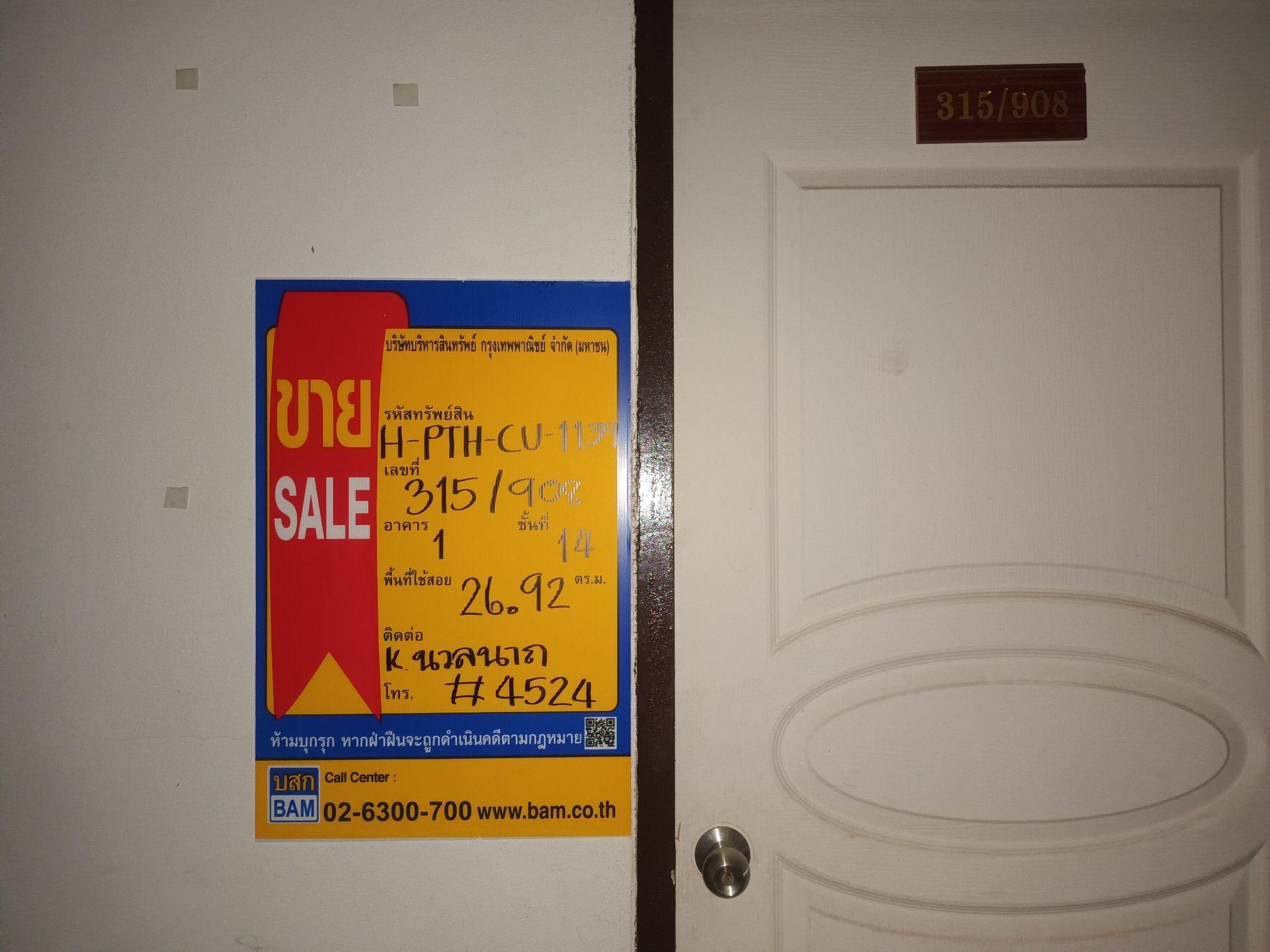 Location: The apartment number 315/908 is on the 14th floor, Building 1, located in Soi Rangsit-Pathum Thani 8, about 1 kilometer into the Prachathipat Subdistrict.